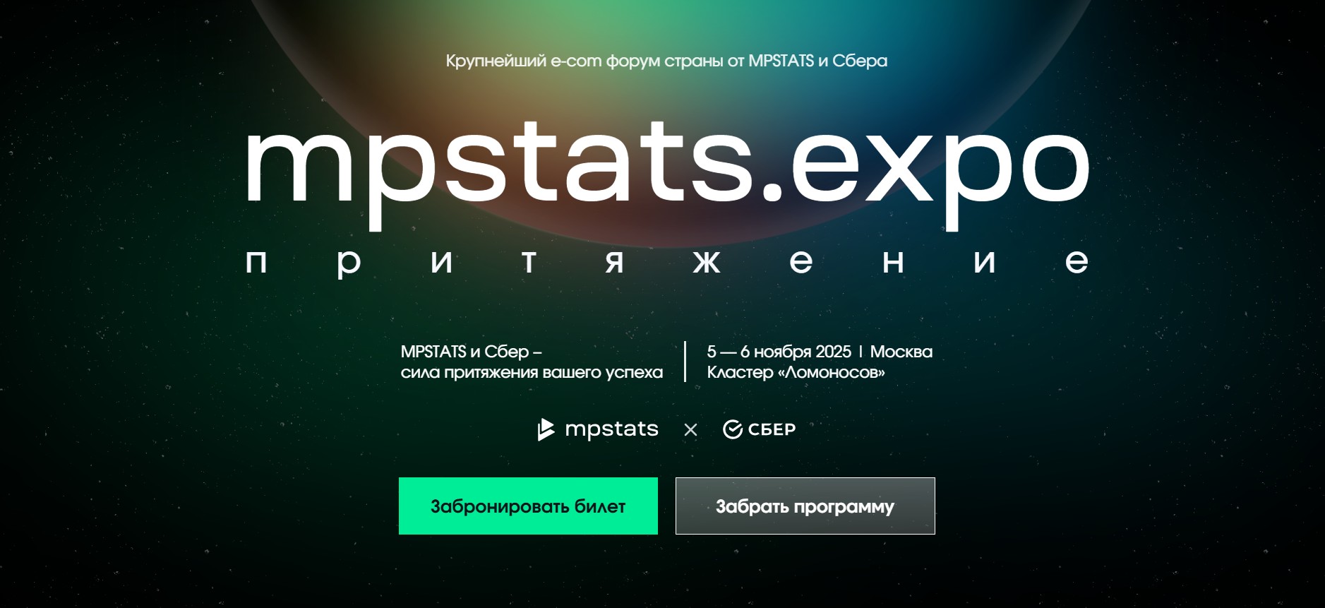 Приглашаем вас на MPSTATS Expo 2025: Притяжение – восьмой по счету и крупнейший e-commerce форум о маркетплейсах в России! Это главное событие для всех, кто строит или развивает свой бизнес на электронных торговых площадках. Организованный компанией MPSTATS совместно со Сбером, форум ставит своей целью собрать ведущих предпринимателей, признанных экспертов и крупнейшие бренды, чтобы дать исчерпывающие ответы на ключевые вызовы, стоящие перед отраслью электронной коммерции.